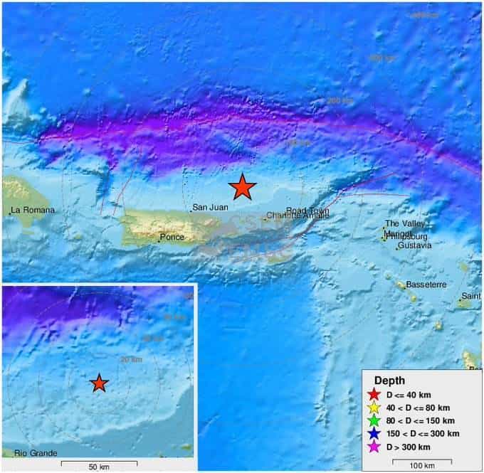 El epicentro del sismo se ubicó 62,34 Kilómetros al norte-noreste de Culebra (pequeña isla situada frente a la costa este de Puerto Rico) y 116,14 Km al este-noreste de San Juan.