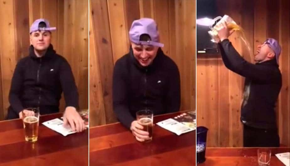 La mayoría de los que acepta participar del #StraightArmChallenge opta por colocar el líquido en una de sus manos y luego alzarla sobre la cabeza, para dejar que después la gravedad haga el resto.