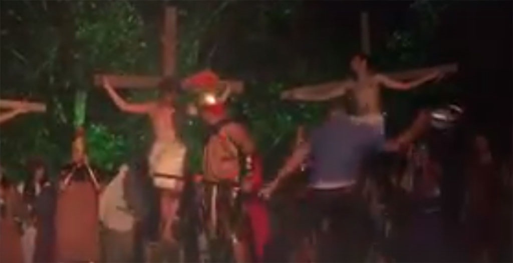 De acuerdo a y un video difundido en redes sociales, se observa cuando un soldado romano entra en escena y lesiona Jesucristo con una lanza; para sorpresa de todos los presentes, un hombre invade el escenario y da un golpe de casco de motocicleta en la nuca del soldado.