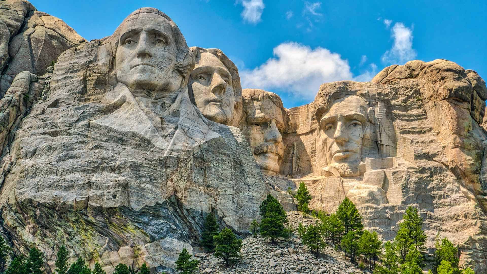 En la famosa ladera de Dakota del Sur están esculpidos los rostros de los presidentes George Washington (1789-1797), Thomas Jefferson (1801-1809), Abraham Lincoln (1861-1865) y Theodore Roosevelt (1901-1909).