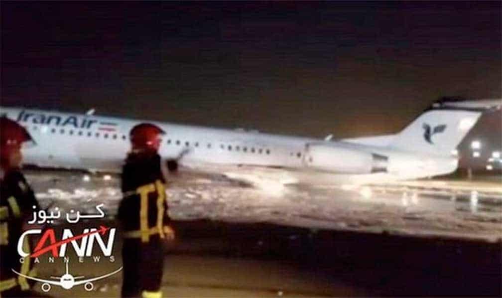 IranAir (Fokker 100) plane made an emergency landing without rear gears opening. pic.twitter.com/j4UdetC9Gg