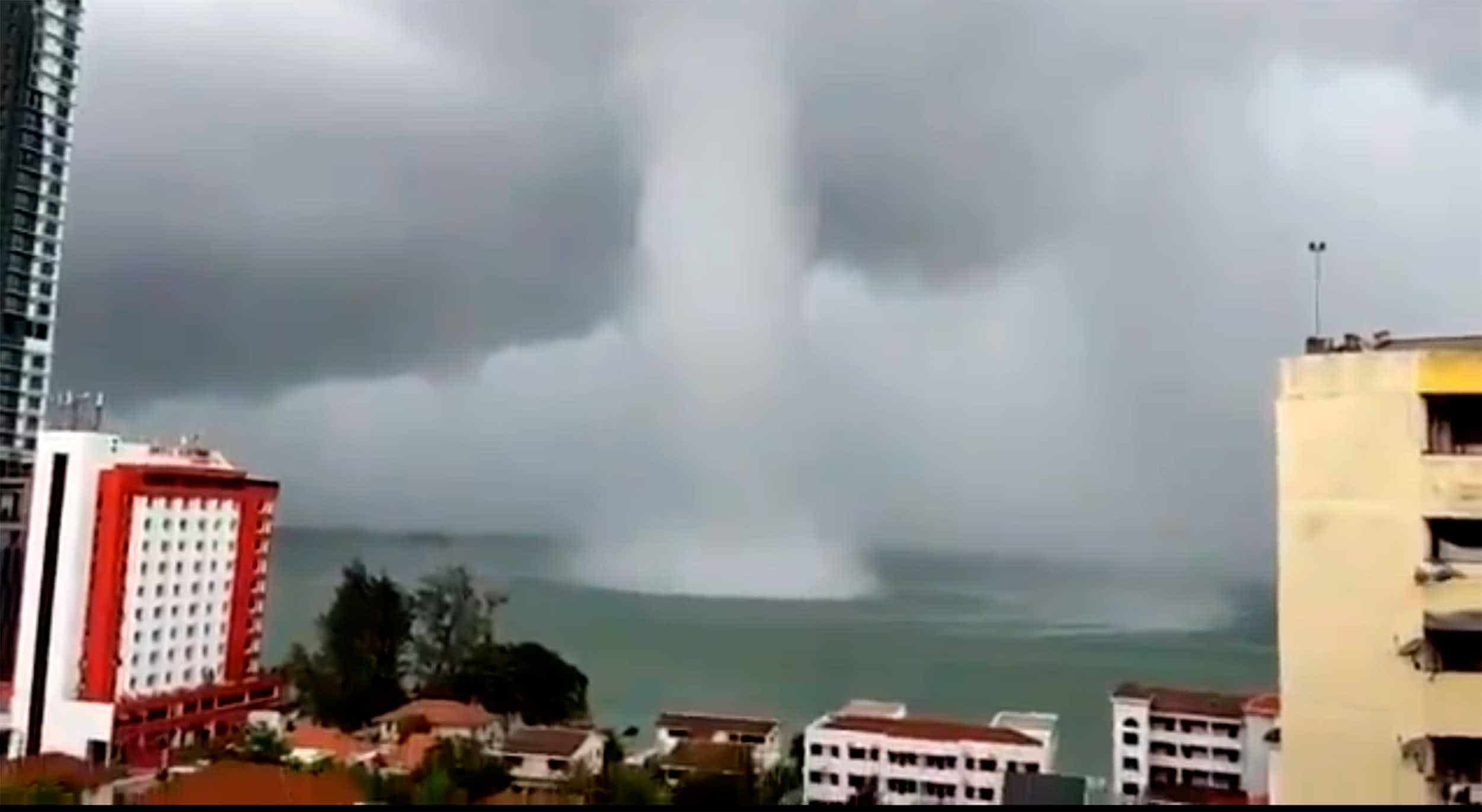 Una enorme tromba marina se desarrolló frente a las costas de la isla de Penang en Malasia, intimidó a los habitantes por casi 45 minutos, sin embargo al tocar tierra se desvaneció sin causar daños fatales.