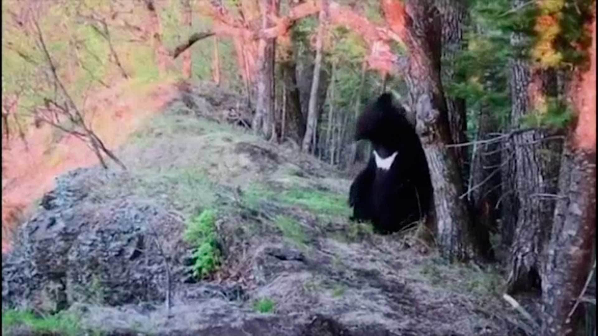 Un oso negro asiático en Rusia fue captado en video disfrutando mientras se rascaba la espalda contra un árbol, antes de intentar comerse la cámara con la que fue grabado.