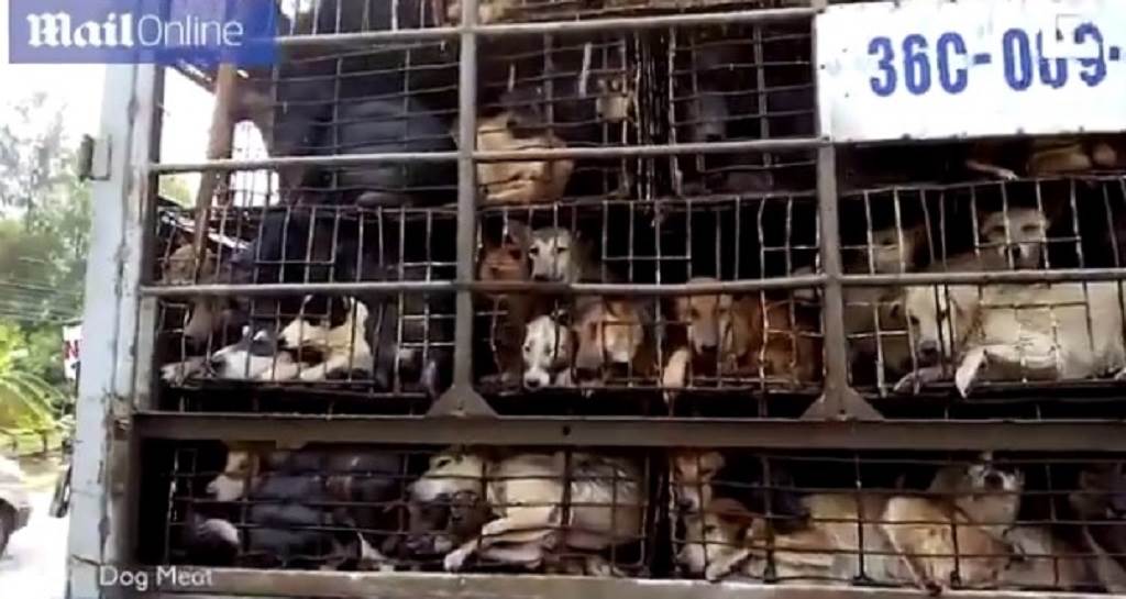 #Shocking footage shows truck packed with #dogs arriving to be boiled alive in #Vietnam because of sick belief that meat gets tastier the more they suffer#WARNING GRAPHIC CONTENThttps://t.co/SNgxbS8Cz6 @MailOnline pic.twitter.com/5jbXNRPtrv