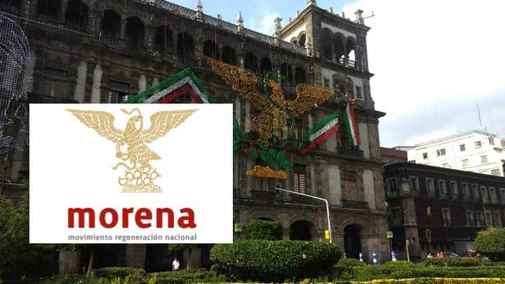 Ya pusieron el logo de Morena en el Zócalo para iniciar las celebraciones del mes patrio................ pic.twitter.com/fsZi0zn6Kv