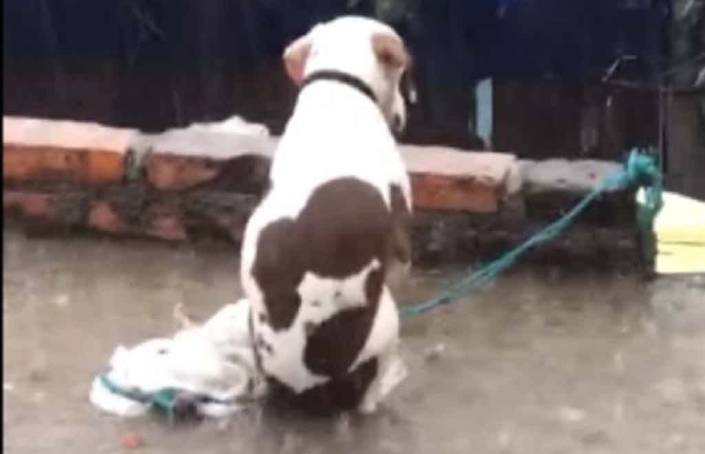 Un perro que se encontraba amarrado en la azotea de una casa, en medio de una fuerte lluvia con granizo sin tener donde protegerse, fue captado en video por un vecino.