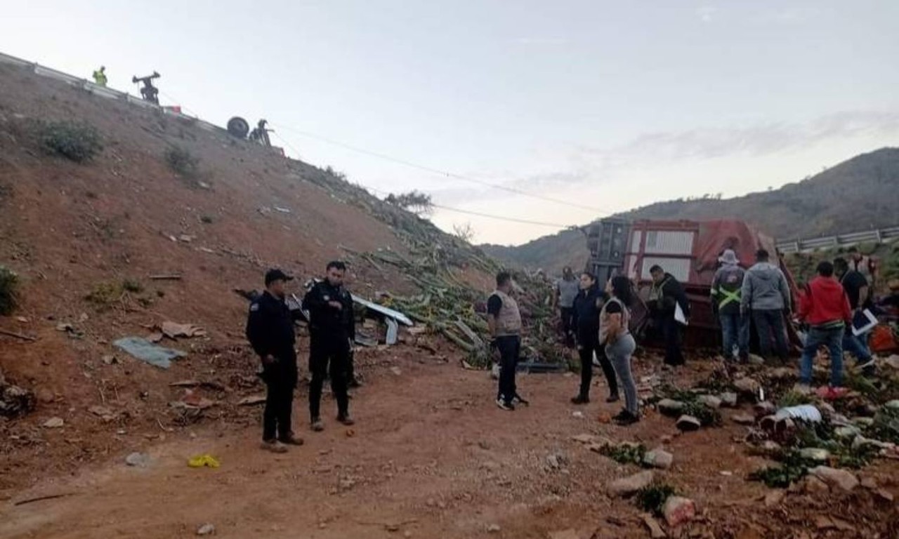 La volcadura de un camión cargado de flores y cerca de 30 personas dejó como saldo a ocho personas sin vida, entre ellas tres menores de edad y más de 20 lesionados en el municipio de Compostela, Nayarit.El accidente ocurrió en el kilómetro 52 de la autopista Tepic-Puerto Vallarta, mismo lugar en donde hace apenas nueve días un autobús de pasajeros cayó a un barranco y dejó como consecuencia 18 personas muertas y más de 30 heridos.Como en aquella ocasión, este camión proveniente del estado de Puebla, volcó y cayó a un barrando de 20 metros de profundidad luego de presuntamente quedarse sin frenos, provocando que tres menores de edad fallecieran tras el impacto.Al arribar los elementos de seguridad y emergencia, se localizaron los cuerpos de seis personas muertas, sin embargo, al realizar las maniobras para levantar el camión, autoridades se percataron que debajo de éste se encontraban otros dos cuerpos sin signos vitales.En cuanto a las personas lesionadas, nueve de ellas tuvieron que ser trasladadas a un hospital del municipio de Compostela por elementos de Protección Civil y Cruz Roja debido a la gravedad de sus heridas.Tras el accidente, la Secretaría de Seguridad Pública de Nayarit difundió la lista de las personas fallecidas y lesionadas en el lugar:Entre los lesionados se encuentran:José Jaime Romero Salas, chofer de la unidadMiguel Ángel Laguna. 33 años.Josué Gabriel Rodríguez Álvarez. 3 años. Trasladado al Hospital Civil de Tepic.José Miguel Lagunes castro de 9 añosMaría Guadalupe Gallegos. 29 años.José Ángel Zambrano González. 22 años.Lourdes Hernández Sorcia. 38 años.Maribel Antonio Flores. 40 años.Sarahí Concepción Zambrano. 18 años.Jacqueline Zambrano Hernández. 14 años.Entre las víctimas mortales contabilizaron a:Mujeres:Marilu Cuate Alduci.María Concepción Castro Quintero.Sin reconocer.Menores de edad:Juan Diego “N”.Sin reconocer.Sin reconocer.Hombres:Sin reconocer.Sin reconocer.