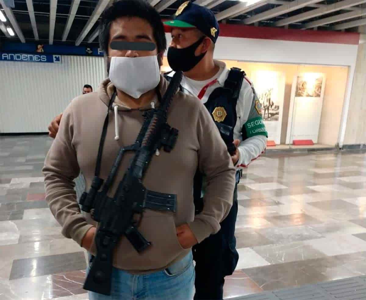Detienen a hombre con ametralladora en el Metro CDMX; ¡Era de juguete!