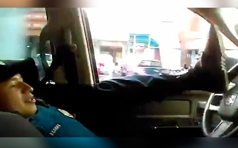 Un policía causó gran polémica en redes sociales, después de que se difundiera un video que protagonizó conduciendo su patrulla de una manera muy peculiar.