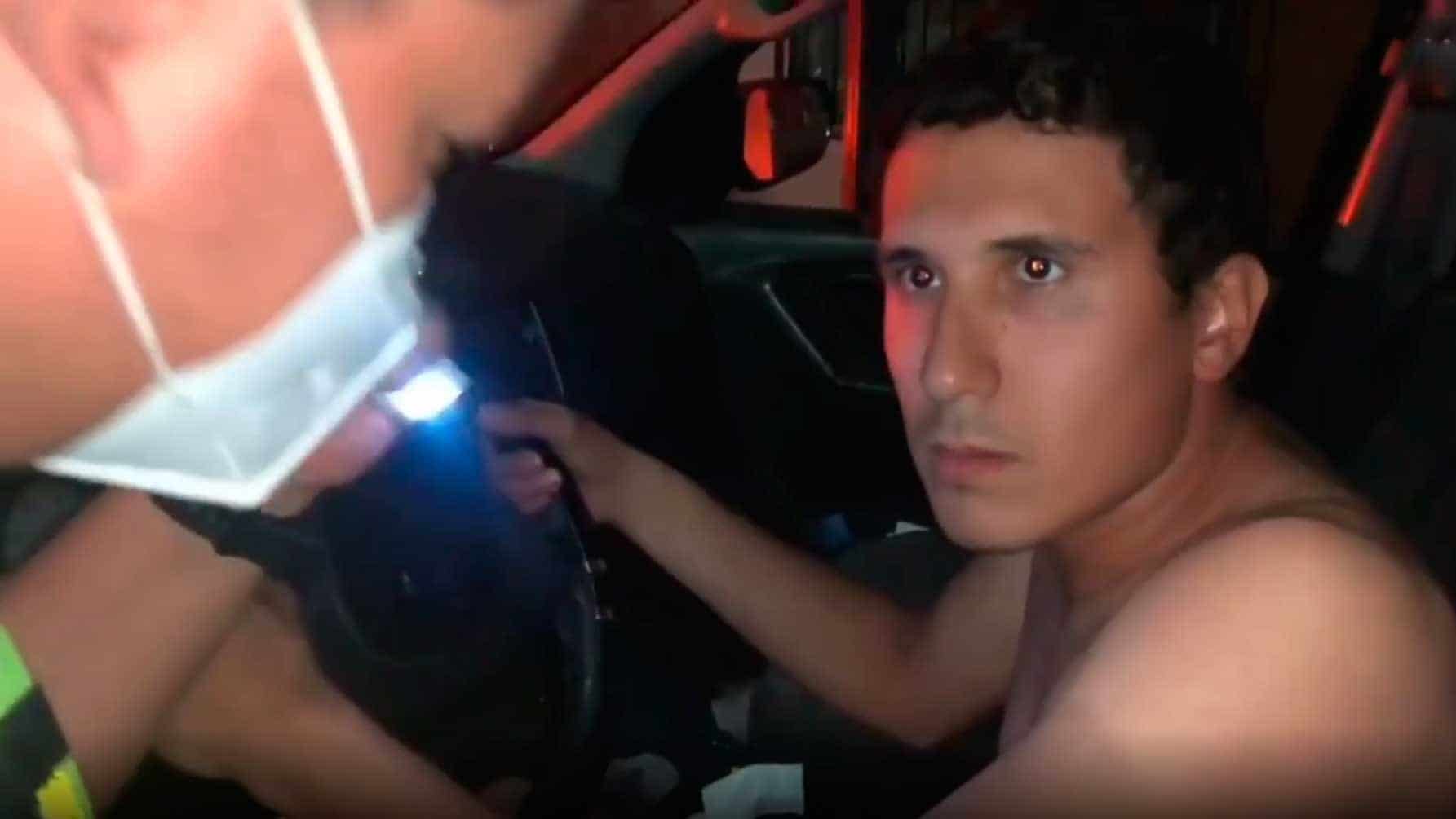 En un vídeo que se viralizó en redes sociales con el #Chernobyl, aparentemente elementos de tránsito detienen a un joven que manejaba desnudo una camioneta la cual había estampado en un poste.