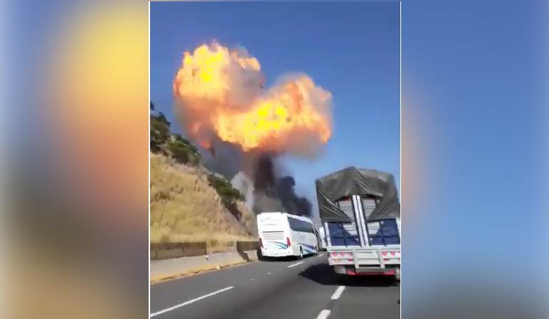 La explosión de la pipa que presuntamente transportaba gasolina, fue captada en video por una de las personas que se encontraban en el lugar y se ha viralizado.