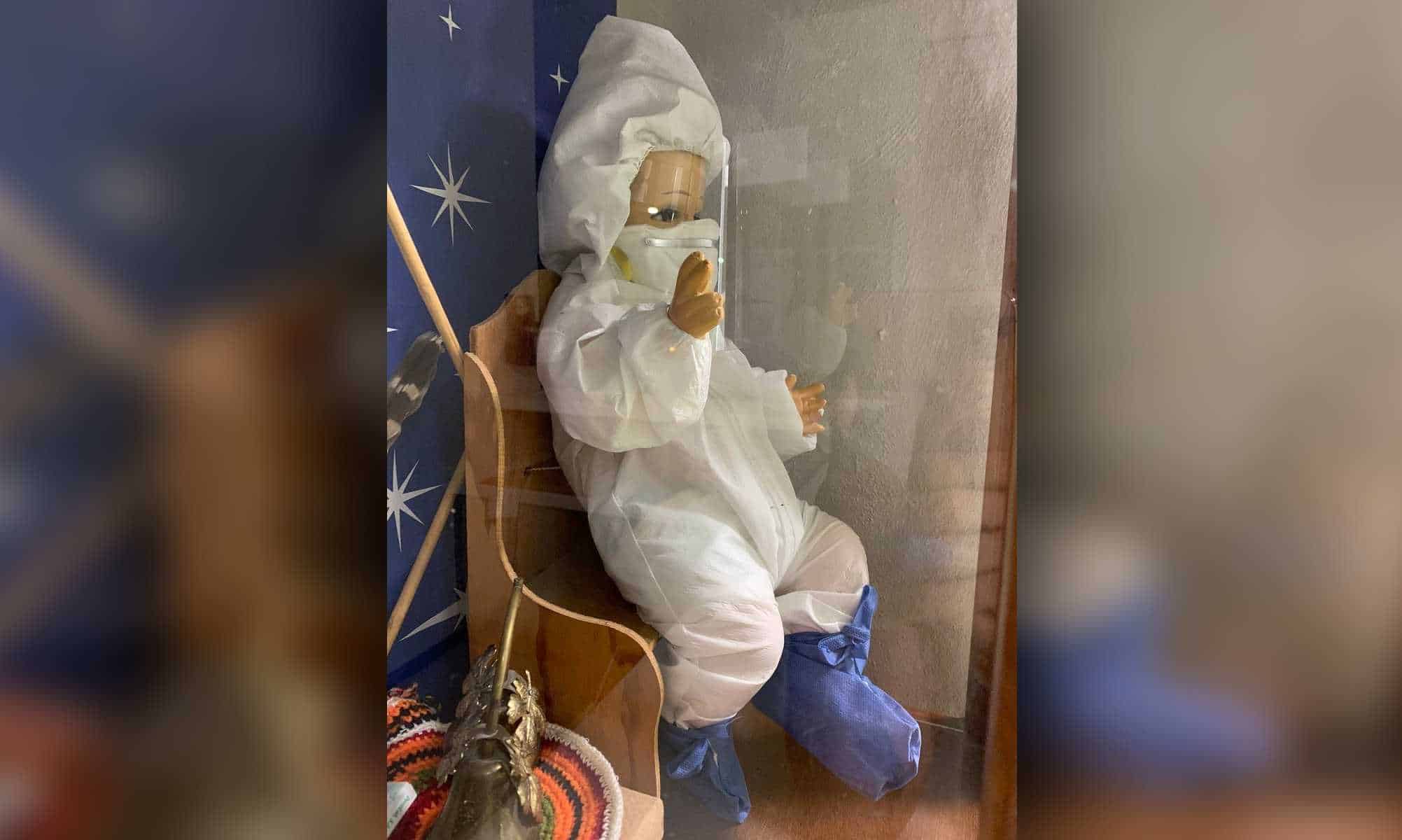 Foto del Niño Dios con traje de anti COVID-19 se hace viral