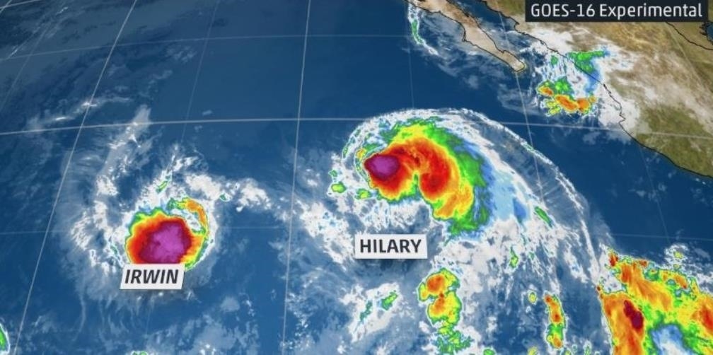 El vórtice de Hilary se encontraba a unos 825 kilómetros al suroeste del extremo de la península de Baja California