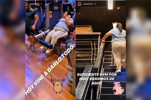 El usuario en Instagram @superjon112 causó el enojo de los usuarios al publicar en sus historias dos fotografías de la mujer, una acompañada del sticker de cerdo con la frase: "Suficiente gym por hoy! Vámonos de aquí".