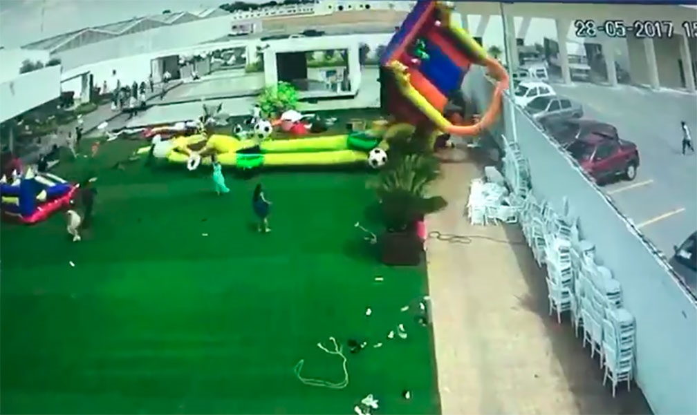Una fuerte ráfaga de viento arrastró los inflables con varios niños arriba, provocando las lesiones a los niños