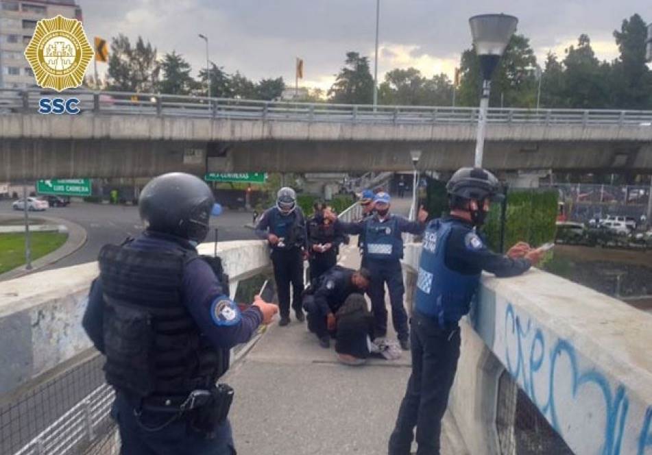CIUDAD DE MÉXICO.- Una mujer quien al parecer sufre de depresión intentó atentar contra su vida al querer arrojarse desde un puente peatonal en la alcaldía Magdalena Contreras, la cual fue rescatada por personal de la Secretaría de Seguridad Ciudadana (SSC) de la Ciudad de México.