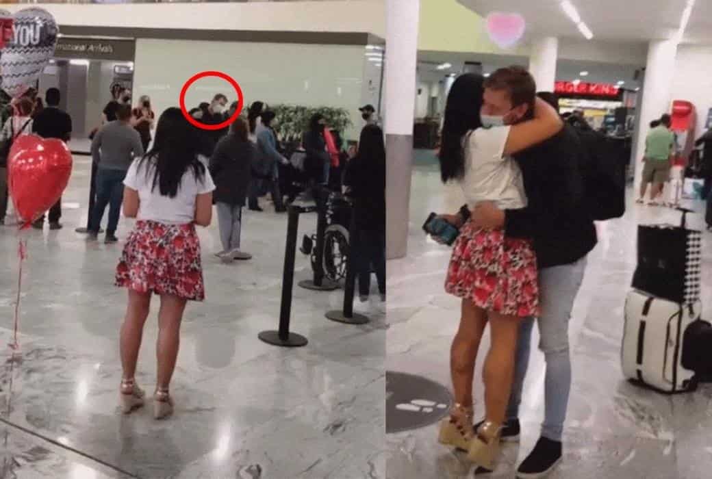 Iris tampoco reconoció a su novio debido a que llevaba puesto la mascarilla, la mujer se quedó esperando en la zona de llegada de pasajeros al aeropuerto, pero su novio no "llegaba".