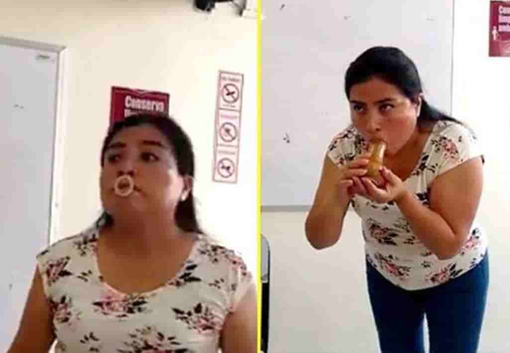 El breve video de 30 segundos muestra a la docente ponerse el condón en la boca para posteriormente hacer colocarlo en una replica plástica de un miembro viril, todo mientras sostiene el preservativo entre sus labios.