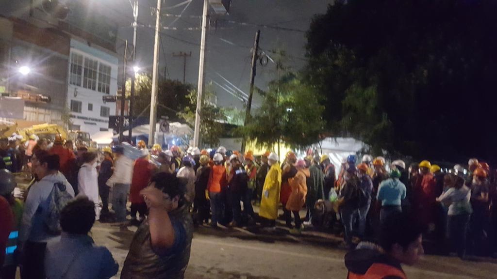 Cuerpos de rescate trabajan sin descanso para encontrar algún indicio de vida, apoyados por perros de rescate y otros grupos de expertos extranjeros, algunos de ellos provenientes de Alemania, pero también hay ciudadanos que han dedicado todo su día a apoyar los trabajos de rescate.