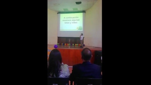 '¡Hola! Mi nombre es Ángel Yetzel Rivas Contreras. Represento al jardín de niños José Rosas Moreno, de segundo grado B. Tengo cuatro años. Mi tema es el aguacate', inició su exposición el pequeño Ángel, que representó a su escuela en un Foro de Investigación.