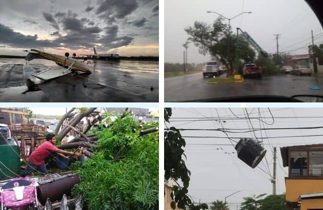 A través de redes sociales, los usuarios han compartido fotos y videos de los daños que la tromba ha causado, como inundaciones, láminas arrancadas de los techos, tinacos lanzados y colgados de cables de luz, señalamientos caídos y árboles caídos.