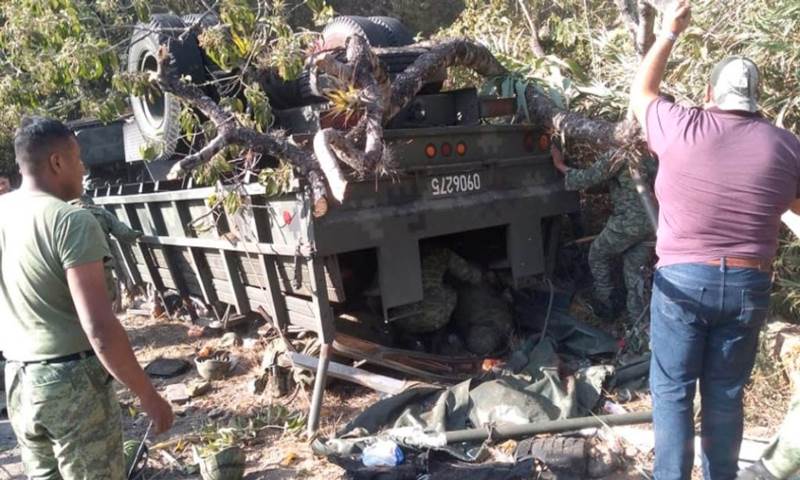 El transporte militar se accidentó la tarde del lunes en un punto de la carretera federal 175 en las inmediaciones del municipio de Guelatao de Juárez, en la llamada Sierra Norte de Oaxaca, señalaron los medios.