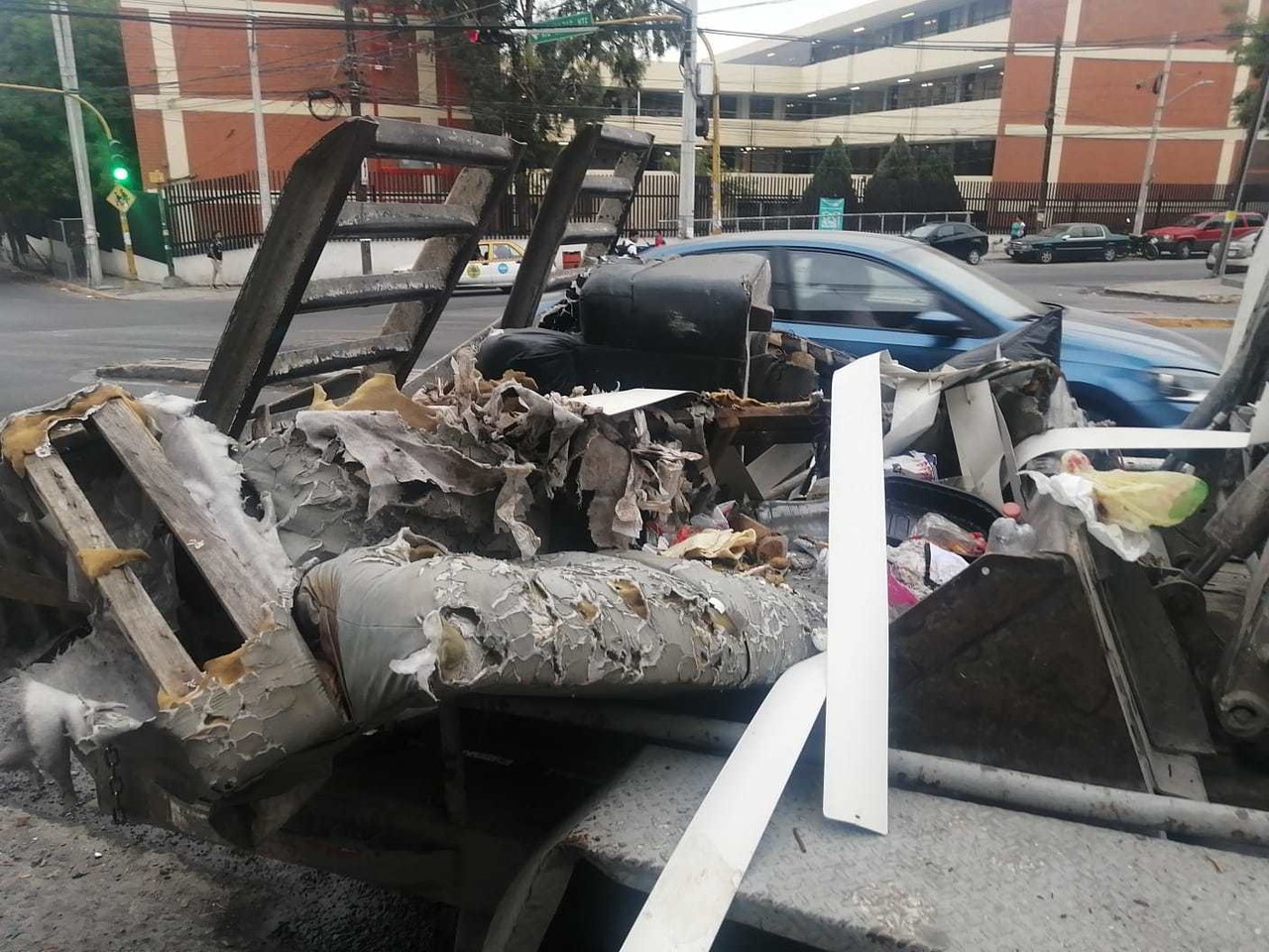 Personal de Servicios Públicos de Monterrey retiró sillones y basura de la calle Río Nazas tras un reporte hecho por Azteca Noreste.