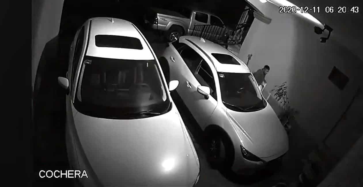 Uno de los afectados compartió el video de una de las cámaras de seguridad que tiene en su vivienda, donde se muestra el momento en que el bautizado "Pervertido de Cumbres" deja un objeto en el porche de su casa.