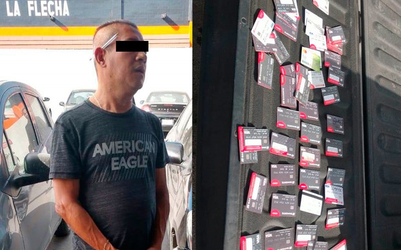 El detenido fue identificado como Jaime D., de 49 años, quien es empleado de una empresa externa que le da servicio de reparación y mantenimiento de cajeros automáticos, por lo que se presume estaba haciendo mal uso de los plásticos.