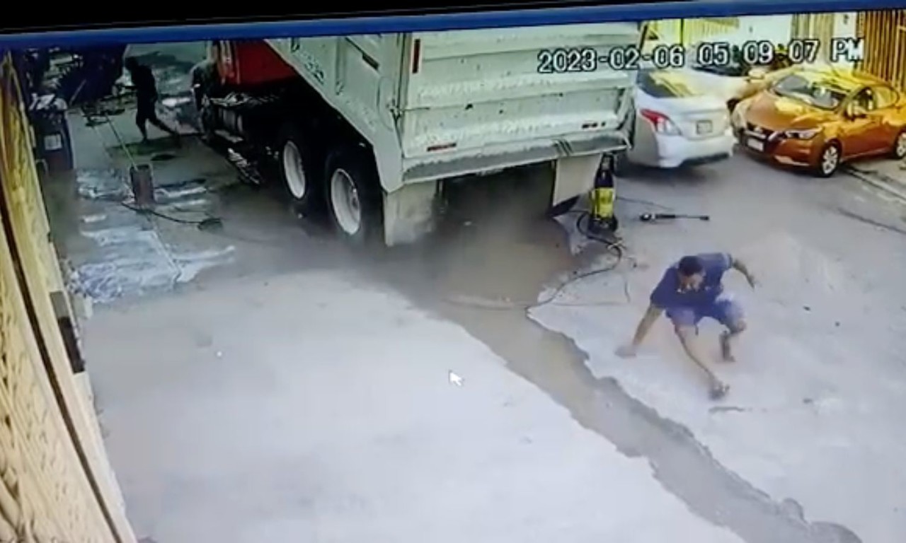 La víctima trató de huir y refugiarse dentro del camión de volteo que se encuentra estacionado, pero fue inútil, el delincuente lo alcanzó y le disparó.