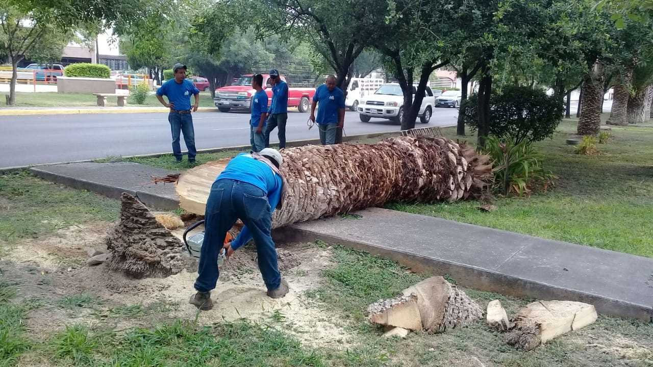 Después de que empleados de la Secretaría de Servicios Públicos del citado Ayuntamiento efectuó el derribe de una palmera ubicada en la calle Francisco Villa en su cruce con Av. Adolfo López Mateos en la colonia Residencial Periférico Tercer Sector, ello a petición de una ciudadana, fue condenado por especialistas.