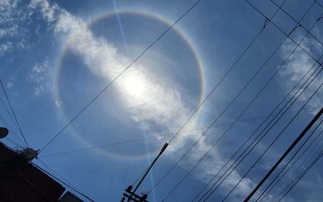 A través de las redes sociales, diversos usuarios desde diferentes puntos del área metropolitana lograron divisar en el firmamento un curioso aro de luz al rededor del sol