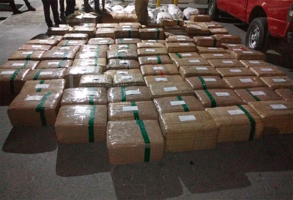 En ese punto detectaron el tractocamión descrito en la denuncia y al efectuarle una revisión encontraron 101 paquetes confeccionados con cinta canela; un bulto cilíndrico y 13 costales todos conteniendo mariguana, dando un peso total aproximado de una tonelada y media.