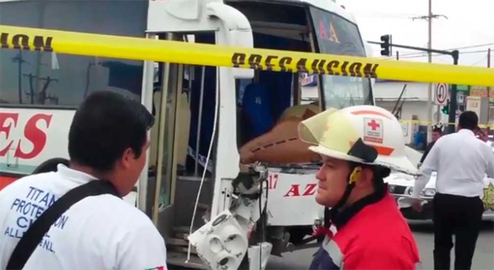 Presuntamente la falla en un semáforo hizo que a la altura de la Carretera Nacional un autobús de pasajeros embistiera la camioneta.
