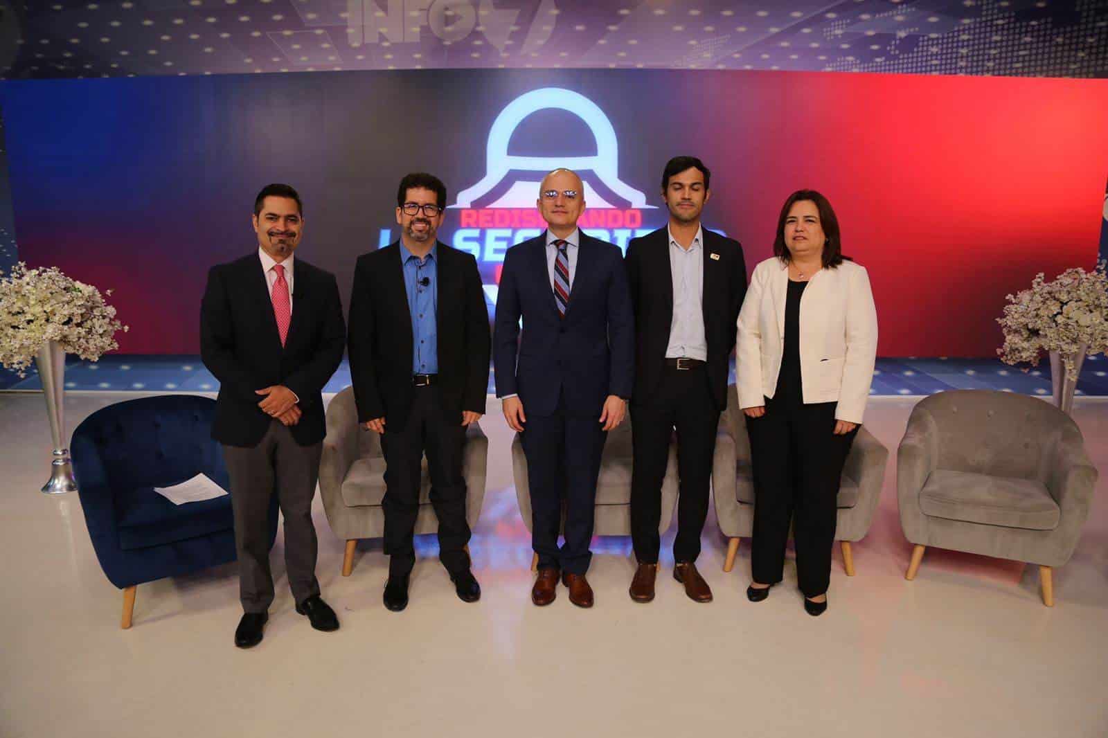 En el Foro Nuevo León: Rediseñando la Seguridad Pública participaron el secretario de Seguridad Pública de Nuevo León, Gerardo Palacios Pámanes; la presidenta del Consejo Ciudadano de Seguridad Pública, Ana María Esquivel; el representante del Consejo Nuevo León, Oswaldo Morales, y el de Cómo Vamos Nuevo León, Luis Ávila. Además, fue moderado por el periodista Luis Padua.