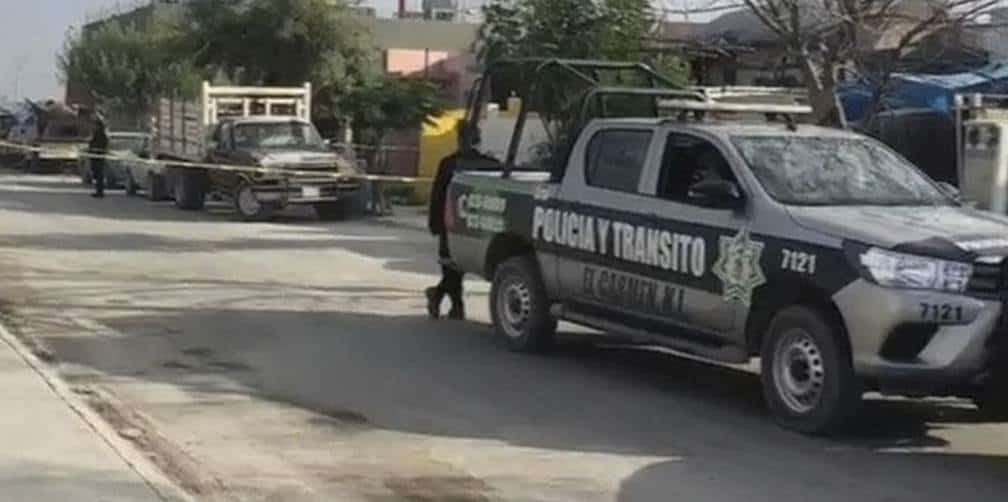 Elementos de la Policía Municipal de movilizaron ante el reporte de un asesinato en la colonia Villas del Arco, en El Carmen N.L.