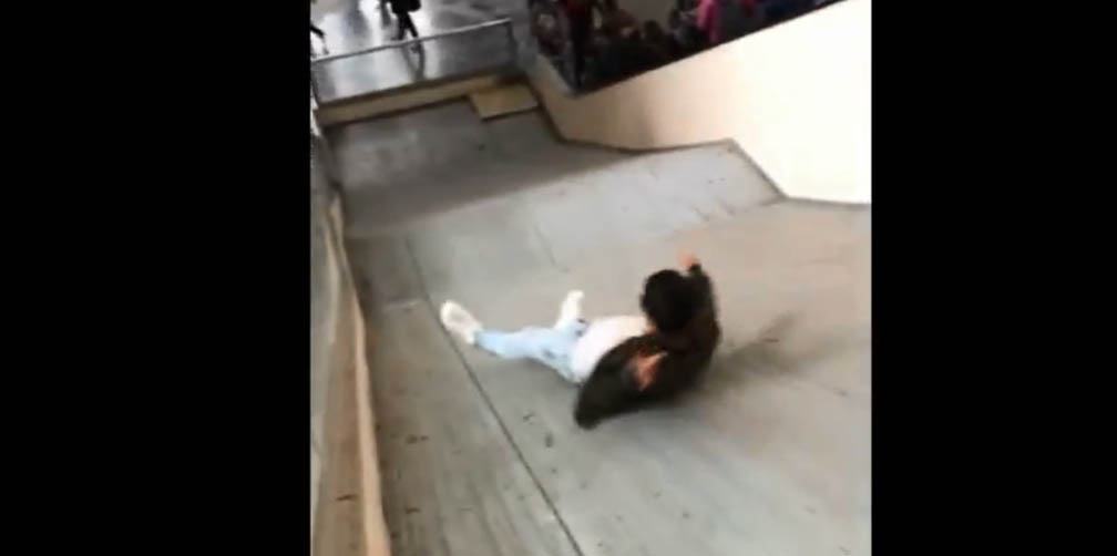 Joven se expone al usar rampa del Metro como resbaladilla