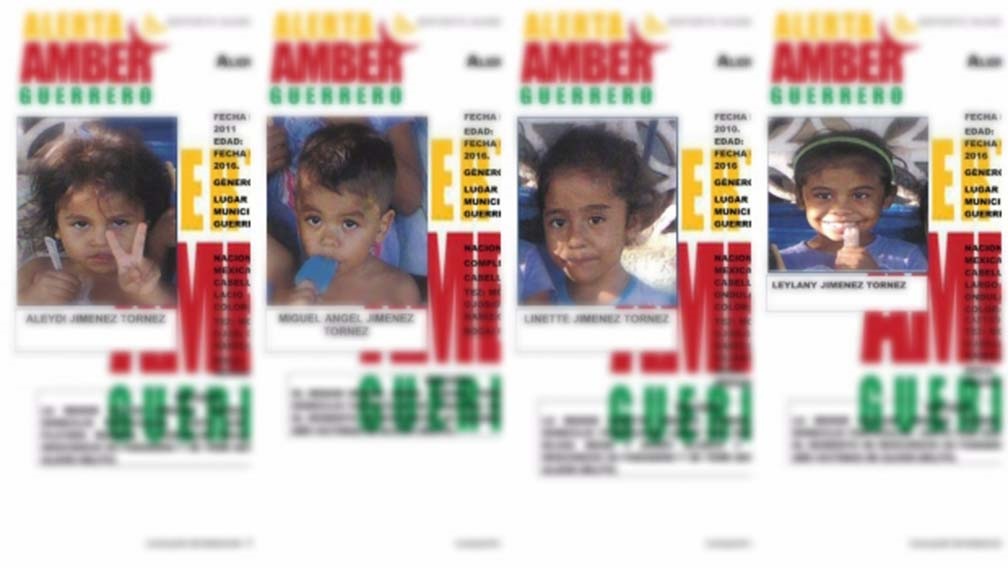 Tras este hecho, el pasado domingo la Fiscalía General de Guerrero emitió una alerta amber para informar sobre la desaparición de los menores, Miguel Ángel 2 años de edad, Aleydi de 5 años, Linette 6 años y Leylani de 8 años.