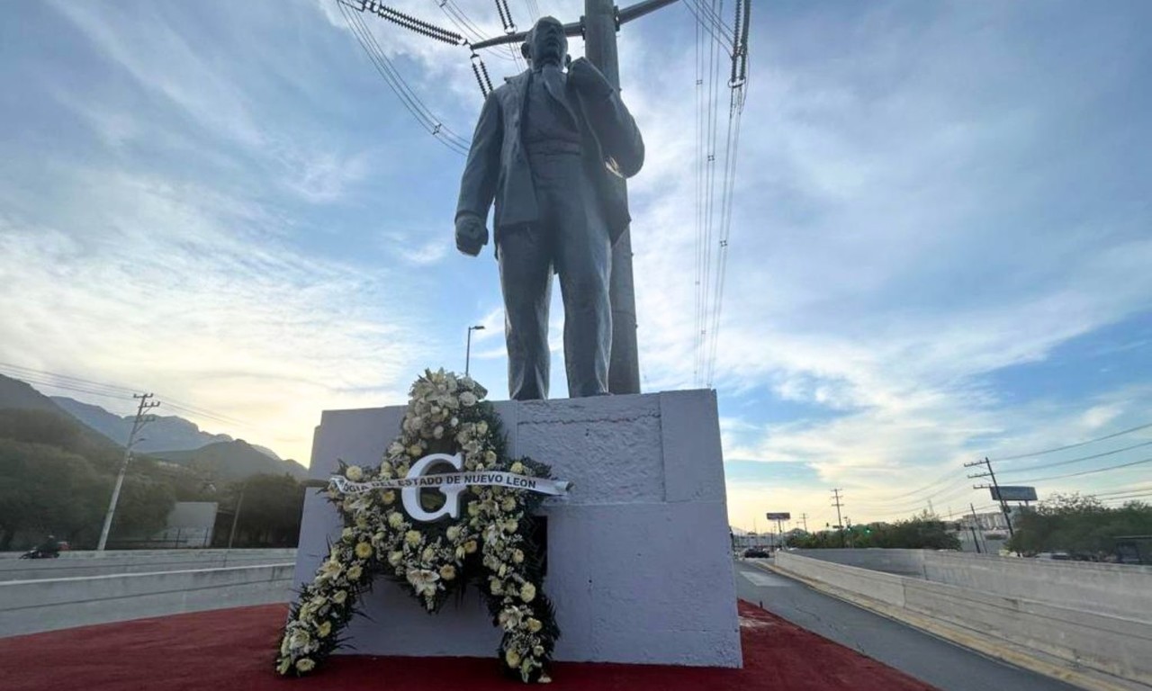 Se trata de una ofrenda floral colocada por la Gran Logia del estado de Nuevo León en la estatua que se encuentra sobre la avenida Lázaro Cárdenas.