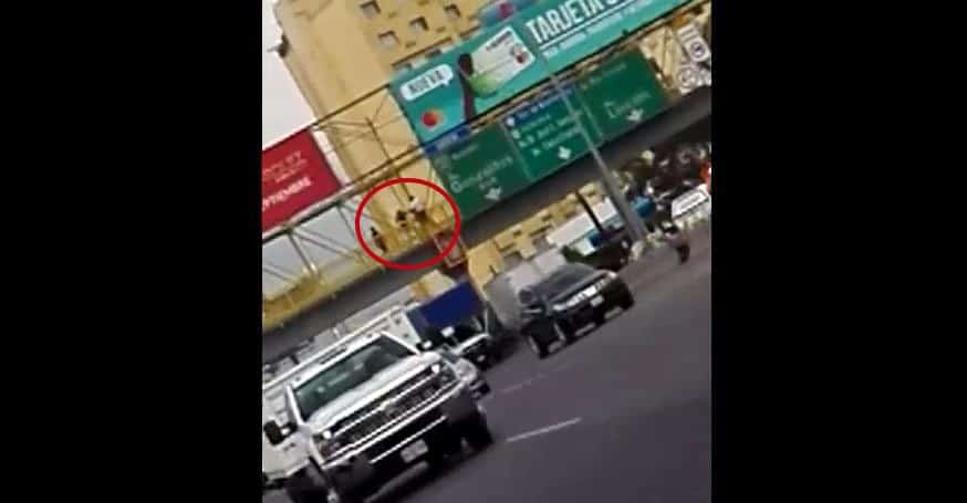 Momento en que joven se lanza de un puente en Av. Fidel Velázquez