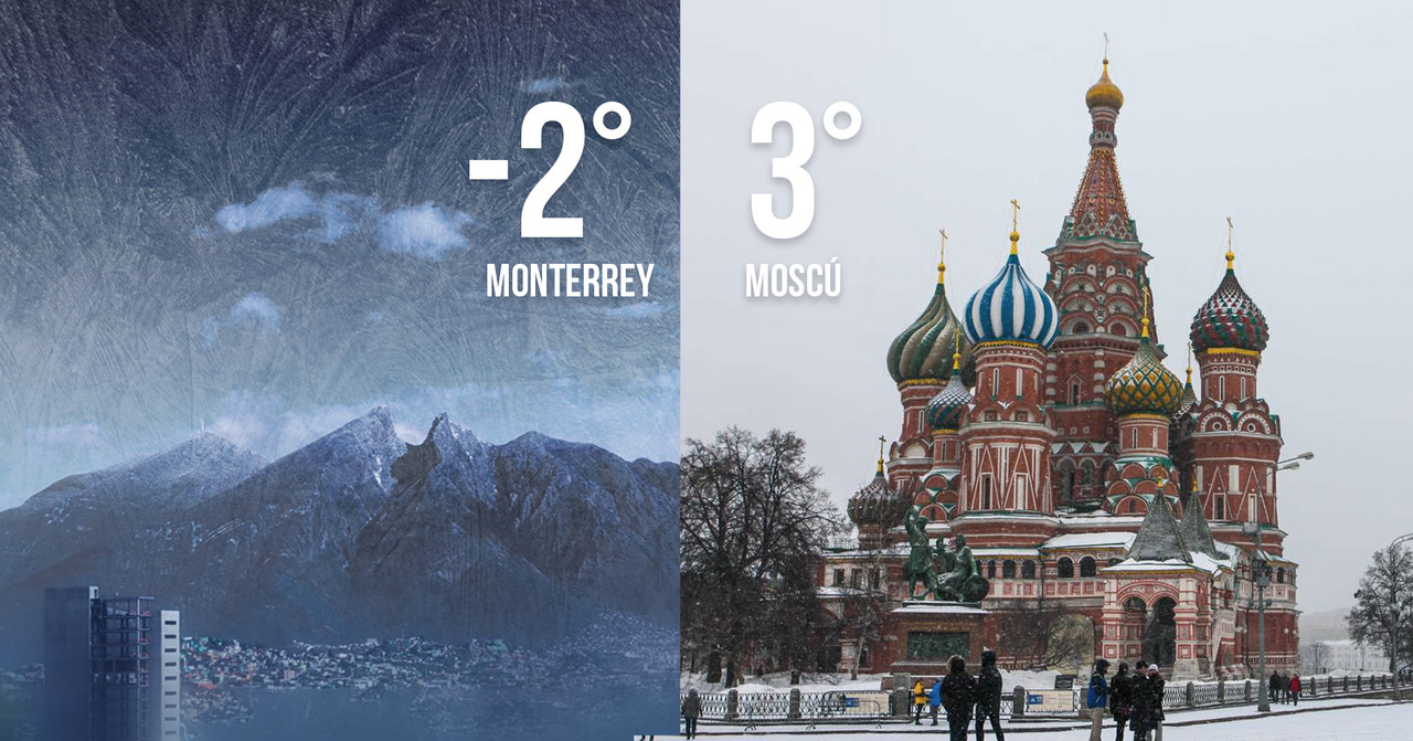 Monterrey, Nuevo León.- Si bien, la Sultana del Norte es ampliamente conocida por sus montañas, la carne asada y el cabrito, sin embargo, el clima es una de las características más curiosas de la capital del estado de Nuevo León.Bien dice el dicho que 'en Monterrey si no te gusta el clima, regresa en 20 minutos' y es que entre la noche del 22 de diciembre y la madrugada del 23 de diciembre, la temperatura bajó drásticamente más de 20 grados hasta situarse en -2°.Curiosamente, este 23 de diciembre la temperatura de Monterrey es más baja incluso que la de algunas ciudades del mundo que son muy famosas por su clima gélido como lo son: Londres, Nueva York, Moscú, París e incluso Helsinki, capital de Finlandia.Pues al mismo tiempo en que Monterrey los termómetros marcaban -2 grados centígrados, en Nueva York llueve y se encuentran a 46 grados Fahrenheit, que equivale a 8 grados Celsius.Por otro lado en Moscú, la capital de Rusia, donde las temperaturas pueden bajar dos dígitos bajo cero, presenta un clima lluvioso de 2 grados centígrados.En cuanto a París, los termómetros amanecieron indicando una cómoda temperatura de 14 grados Celsius, con un cielo parcialmente nublado y en Londres, aunque en Londres llueve, gozan de 11 grados centígrados.E increíblemente, en la ciudad de Helsinki, Finlandia, donde la temperatura en invierno puede descender hasta los -50 grados centígrados, de momento se encuentran a 1 grado.¿En que ciudades amanecieron con clima extremo este 23 de diciembre?No obstante, cabe destacar que en algunas regiones de Canadá y Estados Unidos, una tormenta invernal situó el termómetro muy por debajo del 0°, tal es el caso de Edmonton, que es la ciudad más al norte de Canadá y de momento se encuentran a -21°.Asimismo, en Saskatoon, capital del estado de Saskatchewan, en Canadá, amanecieron a -31°.