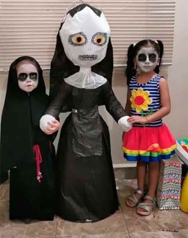 Los padres aunque un poco sorprendidos cumplieron los deseos de su pequeña hija 'por verla feliz' y le hicieron una fiesta con piñata, pastel y hasta maquillaje inspirado en La Monja.