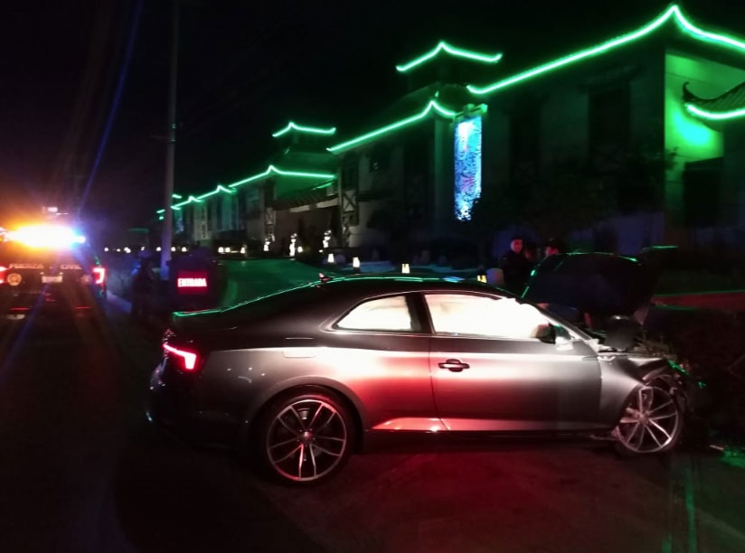 Sin embargo, debido al exceso de velocidad, perdió el control del volante y desde el carril de la izquierda se proyectó contra la entrada principal que conduce al Motel Kyoto.