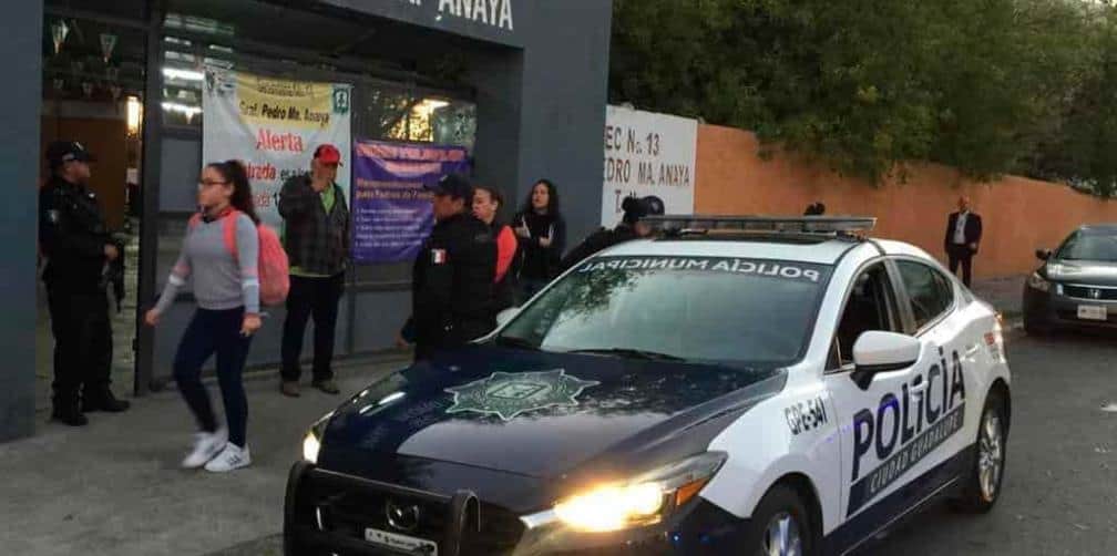 Desde las primeras horas de la jornada, oficiales de Fuerza Civil y policía municipal acudieron a revisar las mochilas de los alumnos de la Secundaria 13, General Pedro María Anaya, pues como sucedió en ocasiones anteriores, la amenaza se originó en redes sociales.