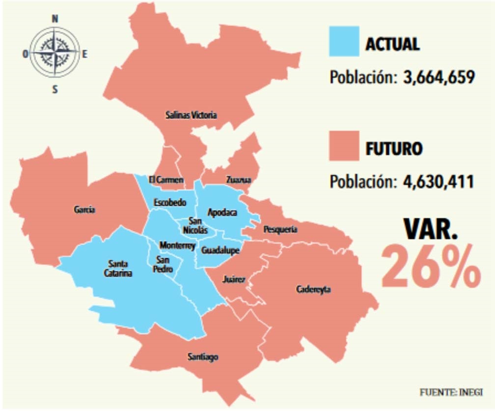 La intención es que los municipios de Juárez, Pesquería, García, Santiago, Zuazua, Salinas Victoria, Cadereyta y El Carmen, sean sumados a los siete que ya conforman el área metropolitana de Monterrey.