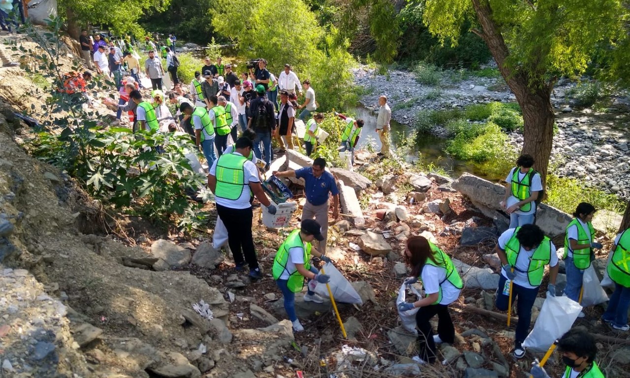 Como parte de la Jornada de Recuperación Ambiental del Río La Silla, el alcalde de Monterrey y diversos voluntarios recogieron basura de esta zona natural.