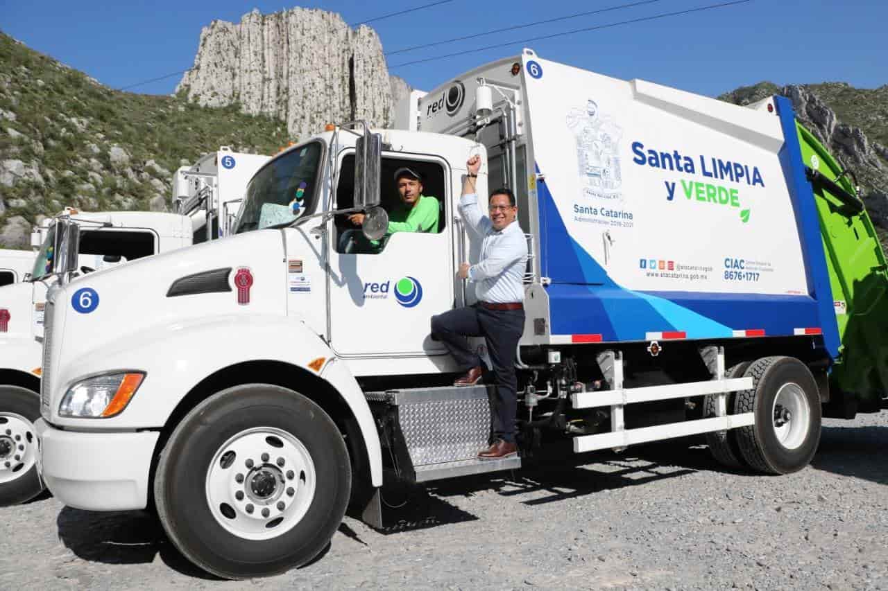 Para tener mayor eficiencia en el servicio de recolección de basura, el municipio de Santa Catarina realizó la entrega de unidades de la empresa Red Ambiental en la entrada del parque La Huasteca de unidades amigables con el medioambiente a través de la renovación de 12 unidades.