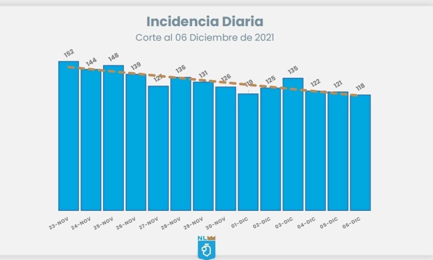 En noviembre se tuvo un número más chico, el cual fue de 114, el día 10, posteriormente la incidencia se conservó entre los 126 a los 150.