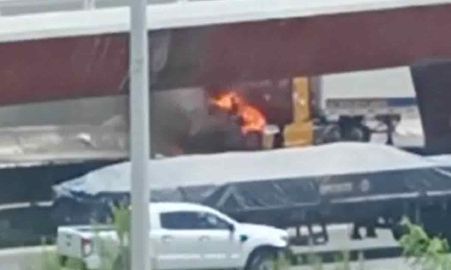 A través de redes sociales se dio a conocer un incendio de un tráiler cerca en Apodaca.