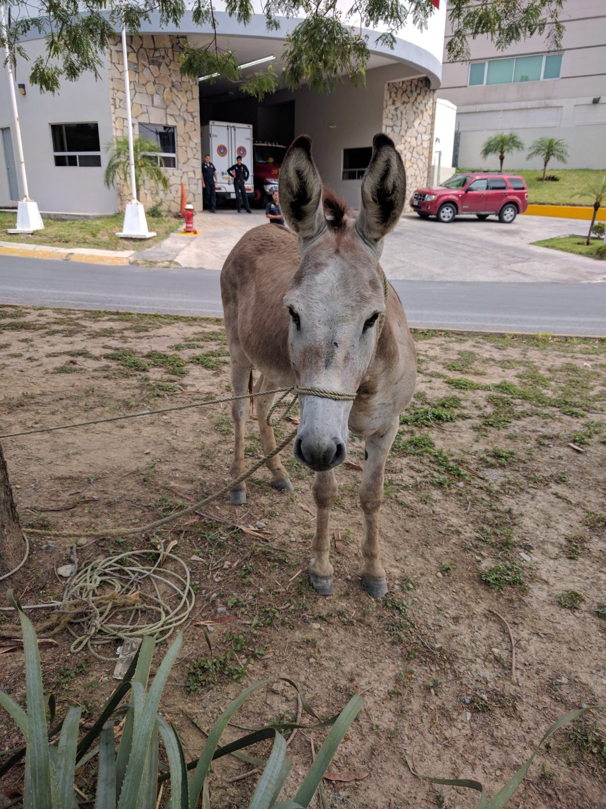El asno fue localizado en el cruce de la avenida Lázaro Cárdenas y la calle Rufino Tamayo, no solo poniendo en riesgo su vida, sino también la de cientos de automovilistas que circulan por esa zona.